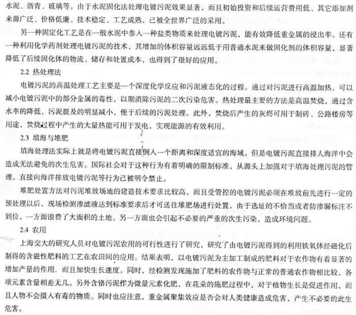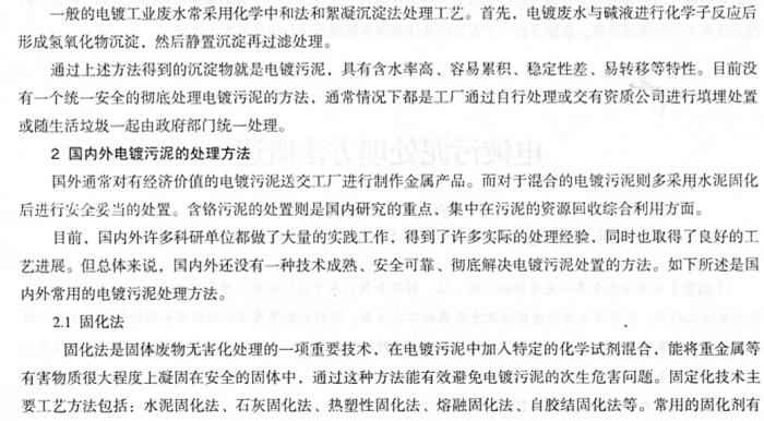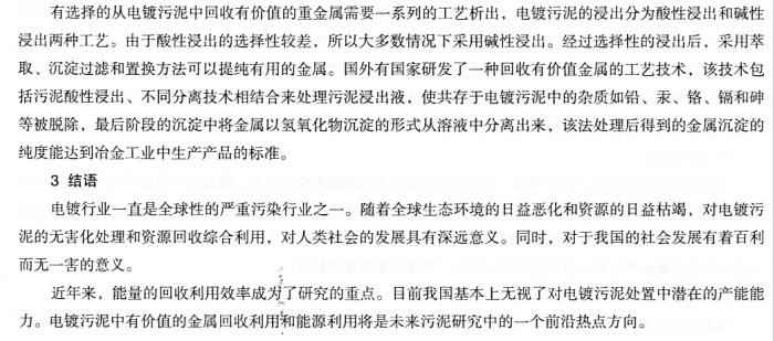 摘要——电镀污泥含有一定量的铜、镍、铬、锌等金属,属于危险废物。对其中的金属(尤其是重金属)进行资源化利用,能有效地消除电镀污泥重金属的二次污染,同时也能带来可观的经济和环境效益。本文介绍了电镀污泥的来源与分类,重点介绍了电镀污泥的国内外处理方法,为今后的研究提供一些思路,最大限度的减少重金属污染。